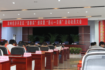 濱州傳媒網(wǎng)訊(記者郭瑩 通訊員李華)2011年5月26日上午,開發(fā)區(qū)隆重舉行2010年度“慈善獎(jiǎng)”頒獎(jiǎng)和2011年度“慈心一日捐”活動(dòng)動(dòng)員大會(huì)。會(huì)議由開發(fā)區(qū)黨工委委員、主任助理、公安分局局長張愛國同志主持,黨工委書記、管委會(huì)主任姚和民同志到會(huì)并作重要講話,會(huì)議表彰了2010年度為慈善事業(yè)做出突出貢獻(xiàn)的單位和個(gè)人,區(qū)黨工委委員、管委會(huì)副主任、慈善總會(huì)會(huì)長馬景澤同志接收了7家企業(yè)的捐贈(zèng),其中,福豪鋼材市場管理有限公司認(rèn)捐基金200萬元,海得曲軸有限責(zé)任公司認(rèn)捐基金200萬元,華晨新型建材有限公司認(rèn)捐基金100萬元,中大兆華牧業(yè)科技有限公司認(rèn)捐基金100萬元,金河房地產(chǎn)開發(fā)有限公司認(rèn)捐基金100萬元,